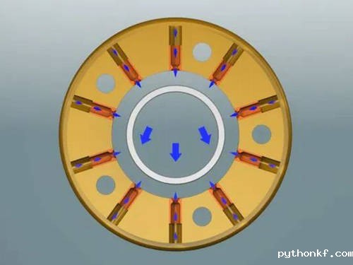 当空气轴承静止时,轴承的内外圈是直接接触的 ,而当将压缩空气输入到轴承间隙界面时,会使内部压力不断增加,直到产生的压力开始将轴承内部接触面推开,让其处于漂浮状态 ,甚至间隙内气压达到承载力,整个空气轴承就会呈现出无摩擦运动状态 。
