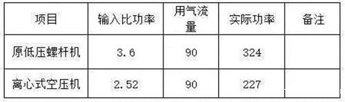 (1)本次改造采用的是钛灵特小型380V离心式空压机,装机功率227KW,排气压力1.7公斤,排气量90立方每分钟,以1台替换原有2台低压螺杆机。