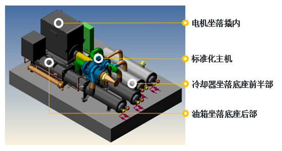 2、油箱和级间冷却器一体化,油系统集成在底座,最大程度减少占地空间。