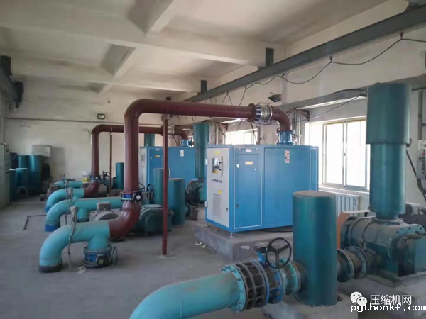 改造前用的是7台56kW的罗茨风机(平时3台机器24小时全天开启,4台机器替换备用)业主反应噪音太大,1台机器噪音为95-115分贝(相当于大型拖拉机驶过的声音)