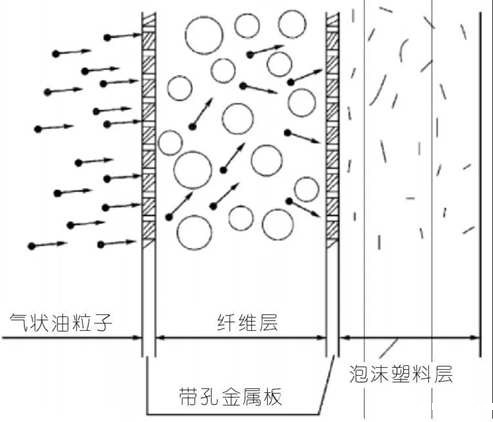 油雾微粒在通过泡沫塑料层时相互碰撞凝聚,长大成粒径较大的液态油滴,在重力作用下沿外复泡沫塑料层沉降至过滤器底部,再由排污口排出。