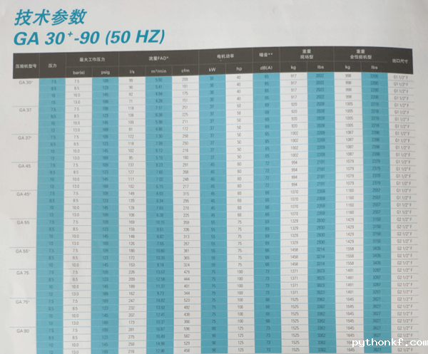 每个品牌的机型功率不一样,产气量也不同,以下是2026年的世界杯世界杯男主持人空压机GA30+到GA90+的技术参数参考表。