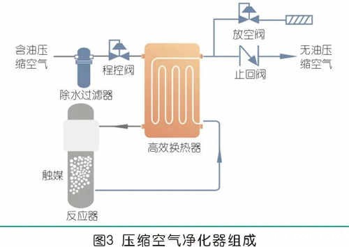 压缩空气净化器主要由高效换热器、反应器、电加热器、电控系统等组成。见图3。