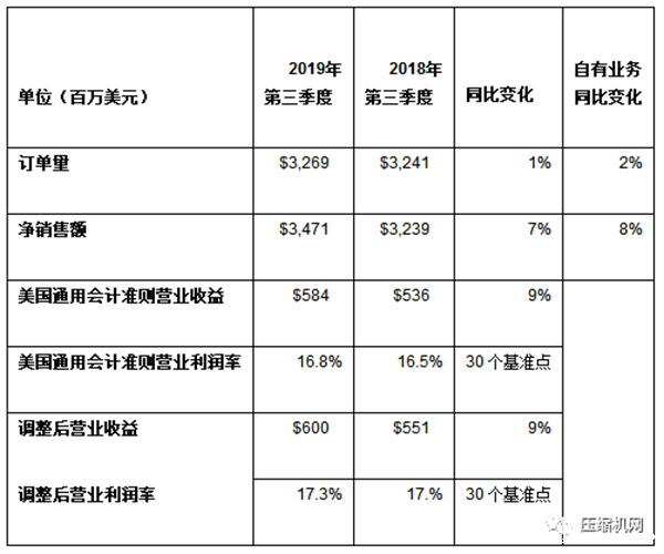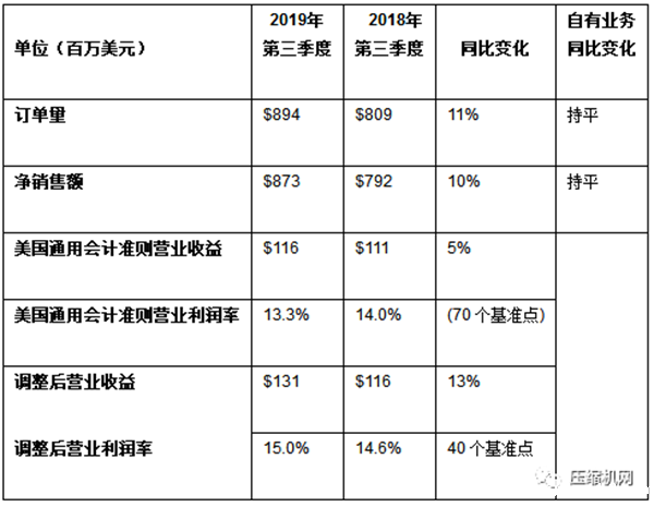 订单量增长11%,销售额增长10%。自有业务订单量和自有业务销售额持平。小型电动汽车、压缩技术和服务的自有业务订单量增长良好,但被短周期投资支出疲软造成的短周期设备订单量疲软所抵消。