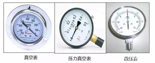 3.压力表按其测量范围,分为真空表、压力真空表、微压表、低压表、中压表及高压表。真空表用于测量小于大气压力的压力值,压力真空表用于测量小于和大于大气压力的压力值,微压表用于测量小于60000Pa的压力值,低压表用于测量0~6MPa压力值,中压表用于测量10~60MPa压力值,高压表用于测量100MPa以上压力值。