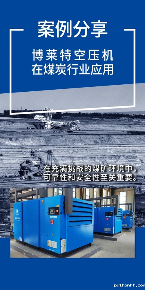 煤炭行业作业环境复杂且充满挑战,可靠性和安全性至关重要。郑州某煤炭企业,主要生产低灰、低硫的无烟煤。多年来,一直使用博莱特的空压机,并主要应用于矿井压风系统,为井下风镐、风泵、气锤、锚杆机、气动凿岩机等气动机械和气动工具提供动力。