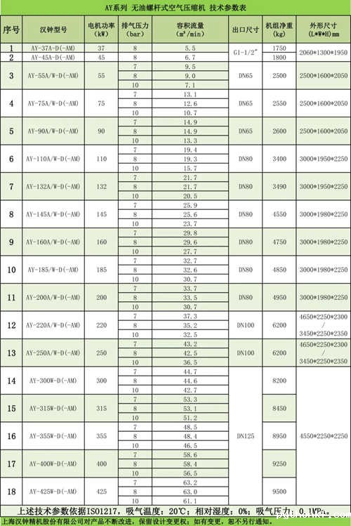 汉钟精机空压机组事业部推出新一代AY系列无油螺杆式空气压缩机。37~425kW全系列产品均通过TUV Class 0级无油认证,保障客户更为优质的压缩空气质量,满足用户节能、环保、高可靠性的需求。