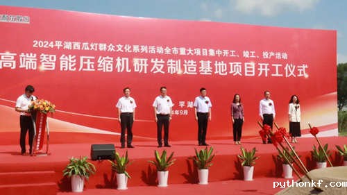 2024年9月22日10点38分,高端智能压缩机研发制造基地项目的开工仪式正式开始,平湖市委常委、常务副市长戴振先生、平湖市人大常委会副主任富国权先生,平湖市政协副主席、总工会主席许静女士,张江长三角科技城平湖园党工委常务副书记、新埭镇党委书记潘加林先生,德耐尔能源装备有限公司总经理赵迎普先生,德耐尔能源装备有限公司副总经理朱汪先生等领导出席活动,共同见证这一重要时刻。