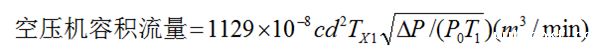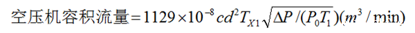 举例:采用34.92mm ASME喷嘴测试SA-50A/8螺杆空压机性能,现场显示:功率43.22kW ,喷嘴前压差为752mmH2O,进气温度27.5℃,喷嘴前温度38.5℃,大气压为:1021hPa,