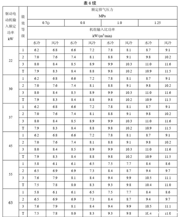 GB 19153-2009 一般用喷油螺杆空气压缩机能效等级