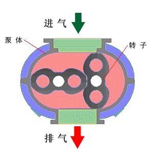 罗茨鼓风机(罗茨风机),利用两个或者三个叶形转子在气缸内作相对运动来压缩和输送气体的回转压缩机。这种鼓风机结构简单,制造方便,适用于低压力场合的气体输送和加压,也可用作真空泵。