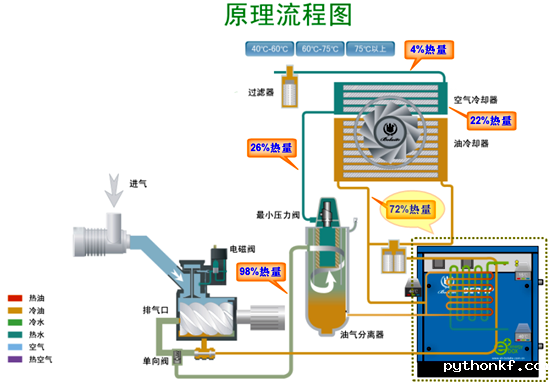 通过空压机热能回收系统所回收的热能可用于生产和生活用热需求的诸多方面: