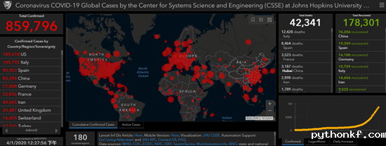 截至北京时间4月1日中午12时27分,全球新冠肺炎累计确诊病例已接近86万,达859796例;累计死亡数破4万,达42341例。至此,中国境外新冠肺炎累计确诊过万的国家增至12个。
