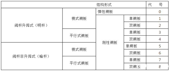 4.阀门结构形式代号阀门结构形式用阿拉伯数字表示,按表5~15 规定。
