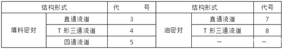 表6 截止阀、节流阀和柱塞阀结构形式代号
