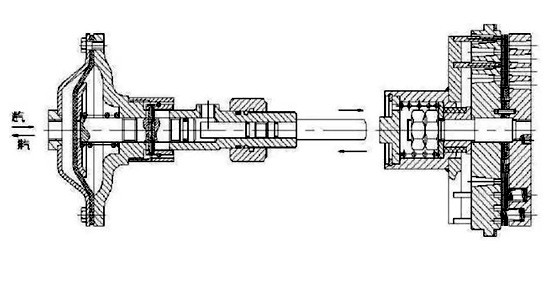 现在用的较多的是气动膜盒式卸荷器工作原理如下图: