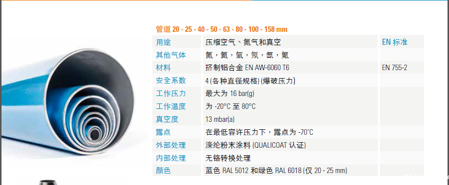 l 无需涂装。 AIRnet 管道符合多种工业标准,并经过标准化涂装,便于管网识别。