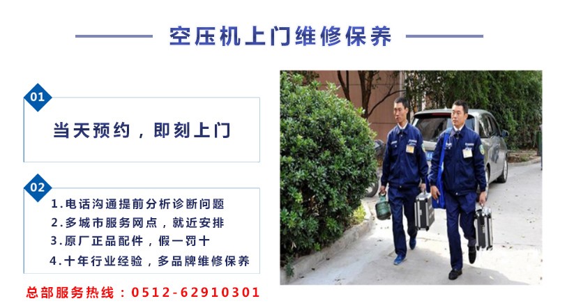 不管您的空压机是何种品牌任何问题都可以直接在线或者电话咨询我们,我们会让离您最近的服务网点(我们在江苏、上海、浙江有多个办事处)售后人员和您联系!总部热线:0512-62910301