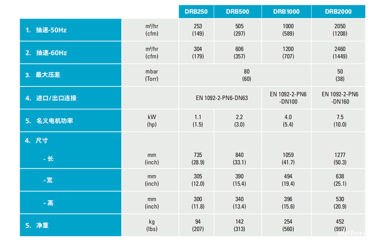 DRB 系列的非接触式旋转设计为前级泵提高了泵送速度。在前级泵的帮助下,您可以在大气压力下启动。智能化设计功能包括集成旁通和热过载保护。