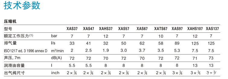 10 种型号。所有型号的重量均小于750Kg,包括选件以及内置发生器和后冷器